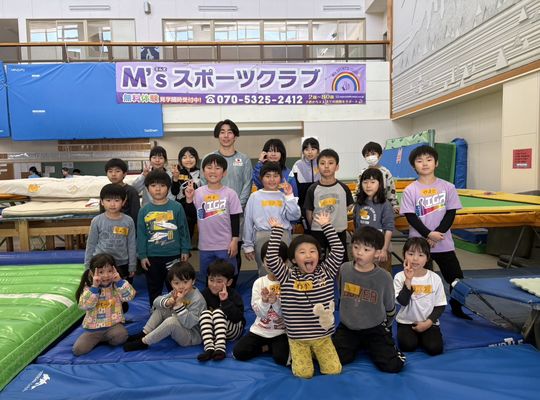 秋田市の体操教室・M'sスポーツクラブでは、未就学児2歳から参加可能でご高齢のかたは80歳代までと幅広い年齢層の方々をサポートするスポーツクラブで、高い技術と知識を持つプロの指導員が担当し常に安全確保で補助体制が整っております。エアートランポリンを導入した体操教室は秋田唯一で、お子様が転倒しても痛くなく身体に負担が少ないのでご高齢者様でもウォーキングなどに最適です。