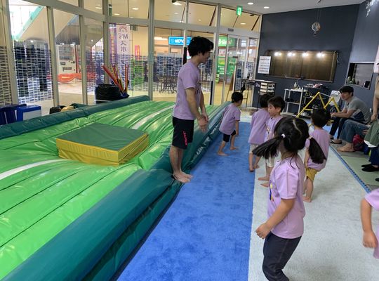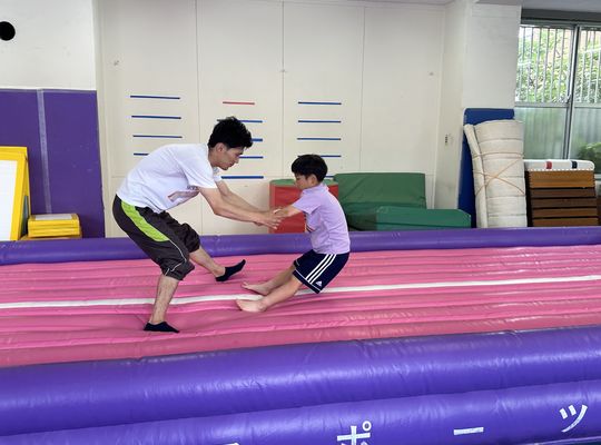 エアートランポリンを導入し身体への負荷を軽減する画期的なプログラム採用し、柔らかい素材なので転んでも痛くないことから身体を解すウォーキングやアクロバティックな動作に挑戦するなど楽しみながら運動ができます。高度な技術と経験を持つ担当者が必ず補助体制に入る見守りもが徹底している事も安心できる要素の一つです。