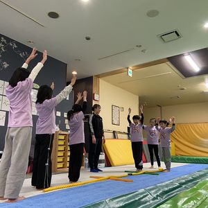 エアートランポリンを導入し身体への負荷を軽減する画期的なプログラム採用し、柔らかい素材なので転んでも痛くないことから身体を解すウォーキングやアクロバティックな動作に挑戦するなど楽しみながら運動ができます。高度な技術と経験を持つ担当者が必ず補助体制に入る見守りもが徹底している事も安心できる要素の一つです。
