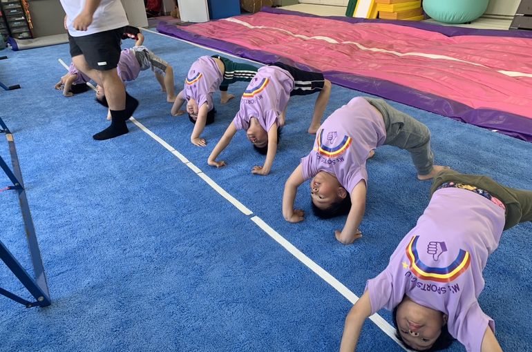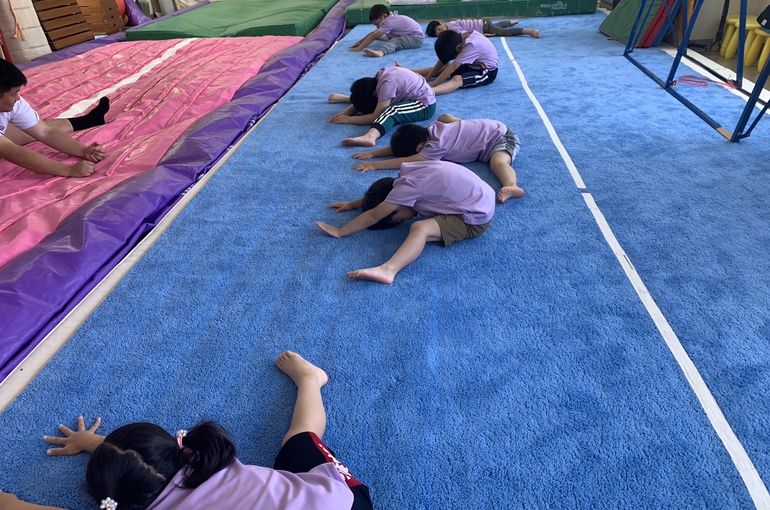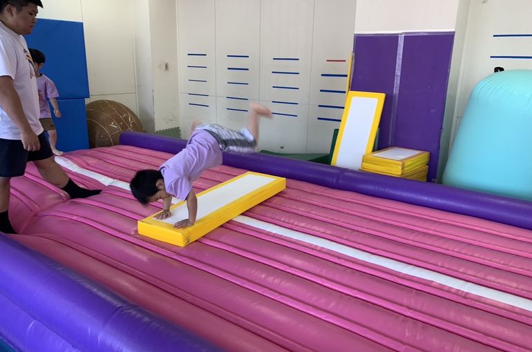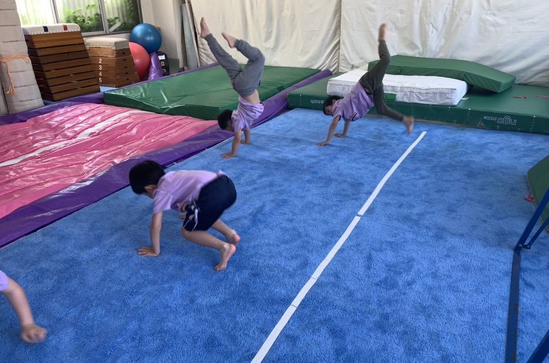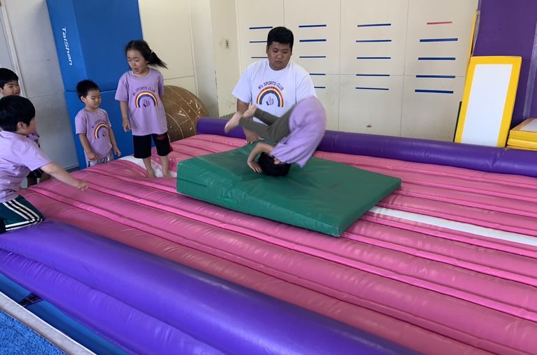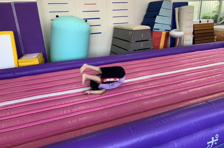 エアートランポリンでは、前転、後転、側転を練習❗️