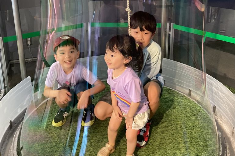 シャボン玉に入ったり、最新技術を使った遊びをしたりしてみんなとても楽しそうな様子😍