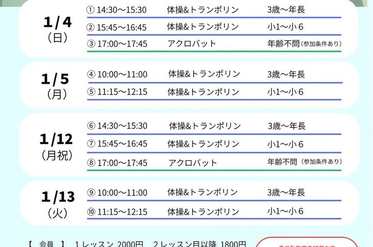 1月11日(日)はスケート&トランポリン教室