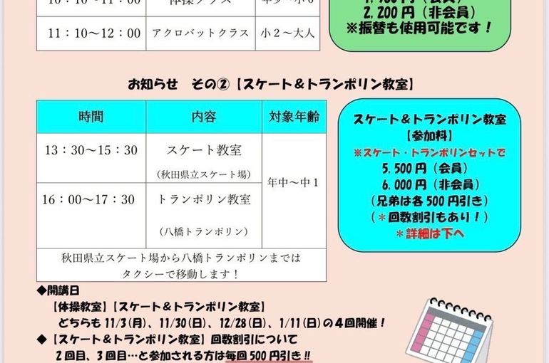 秋田M'sは2026年1月7日(水)の通常レッスンと短期レッスンからスタートとなります!