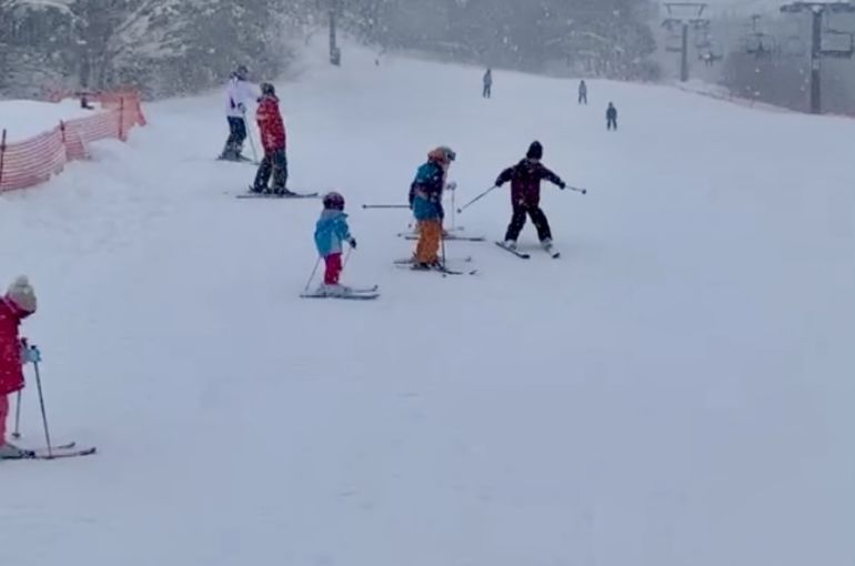 スキーが初めてというお友達も、頑張って基本を習得🎿ヘトヘトになりながらも午前中の練習を頑張りました🔥