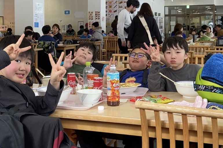 午前練習を終えたあとはみんなでお昼ご飯タイム🍜頑張って動いたので、お腹ぺこぺこの様子🤤