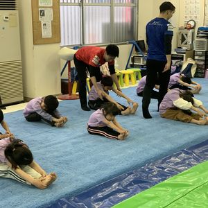まずはみんなで準備運動を行い、スキー用具や使い方についての説明🗣️